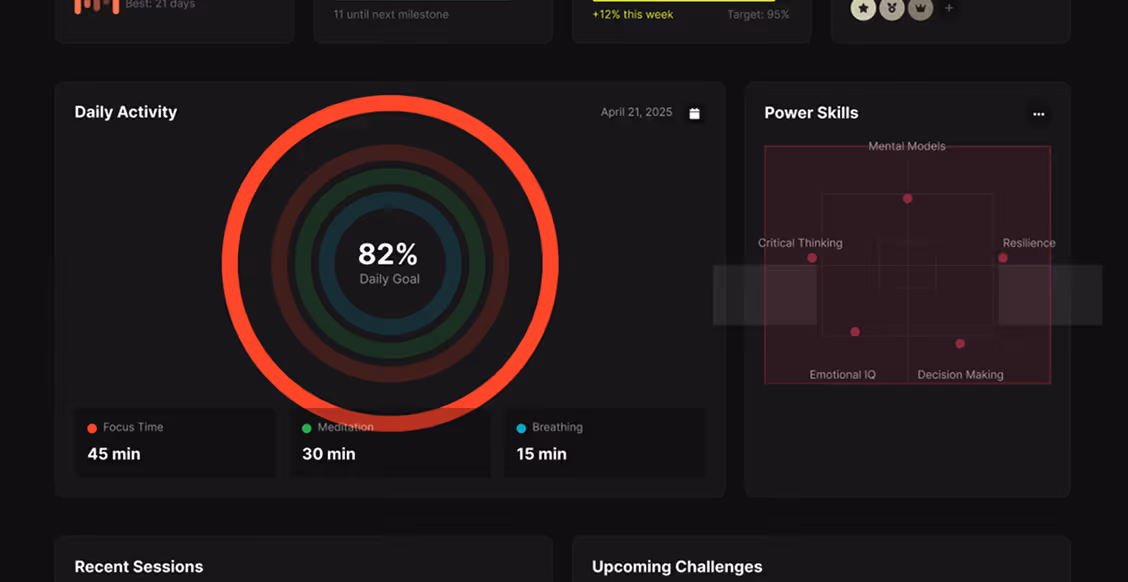 Chaque principe devient un outil concret prêt à l’emploi (modèles, rituels, tableaux de bord, protocoles…). Grâce à la technologie, votre parcours est personnalisé selon vos besoins et vos objectifs, transformant la théorie en actions directement applicables. L’écosystème, amplifié par des partenaires comme Revolut et Goliaths, relie votre pratique à votre quotidien (finances, santé, énergie…), pour un impact durable.